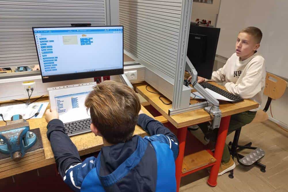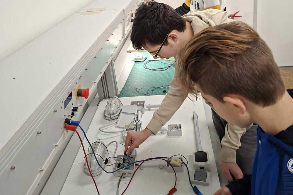 - Fachbereich Smart Techtronics | IT: Roboter programmiert, 3-D-Druck, Wechselblinkerschaltung (Microcontroller), Logikschaltungen auf der SPS