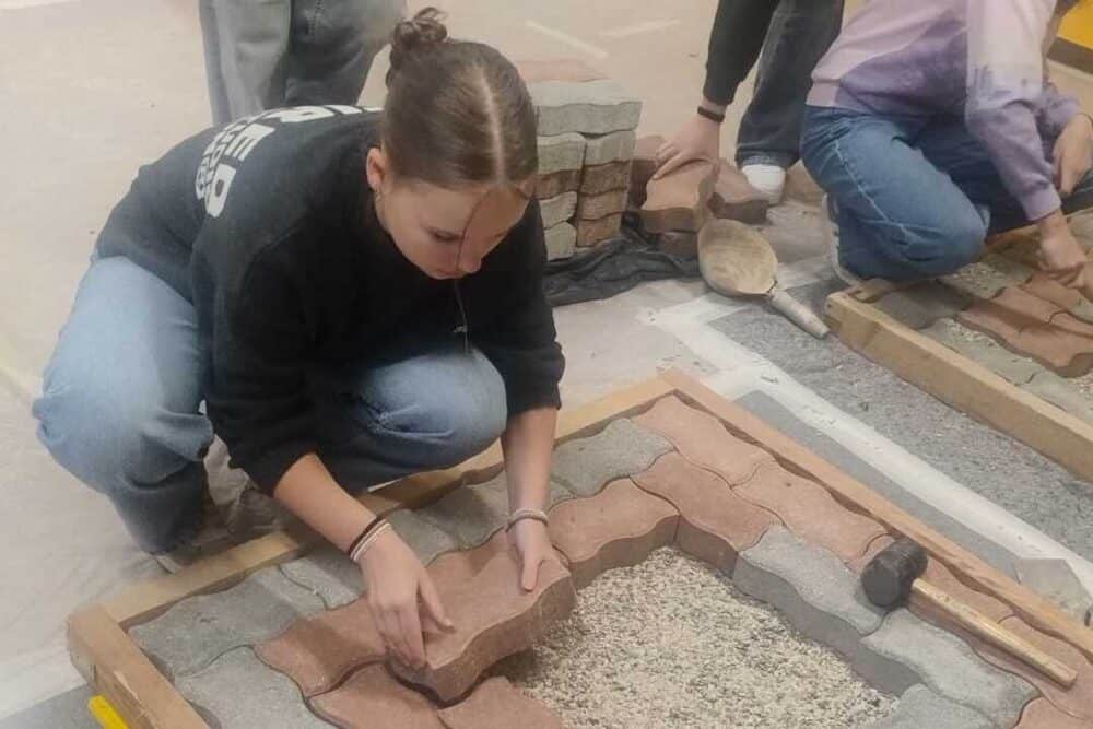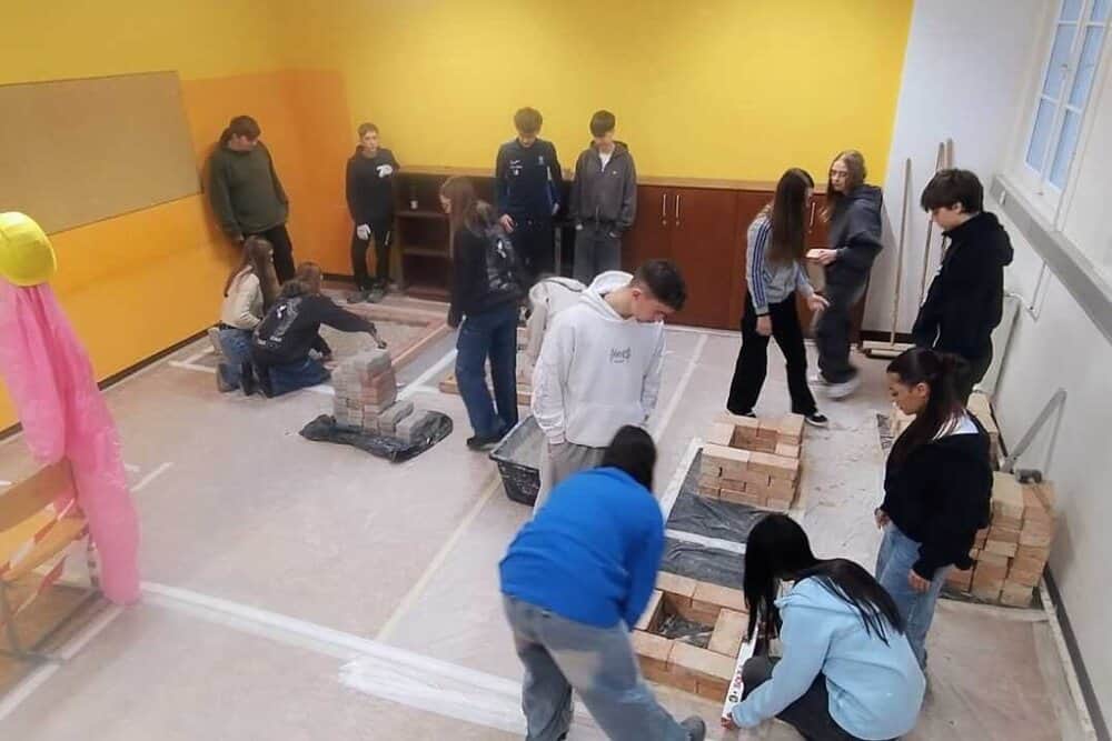 - Fachbereich Bau: Pflastersteine verlegt, Kamin gemauert