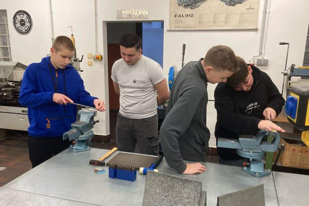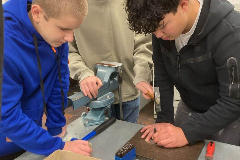 - Fachbereich Metall: Namensschilder aus Alu gefeilt und mit Schlagbuchstaben versehen
