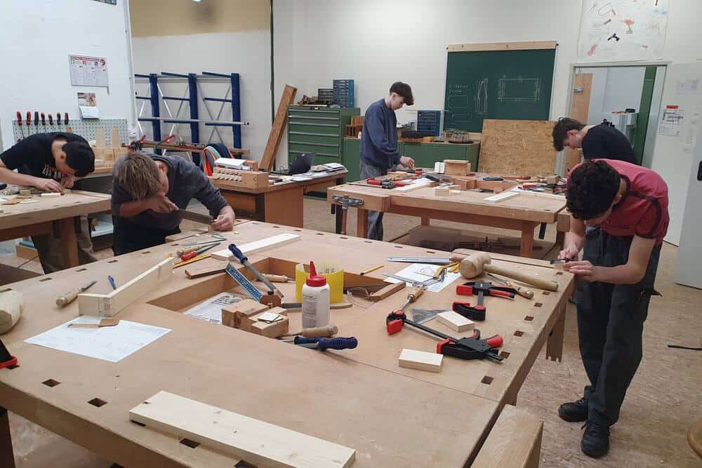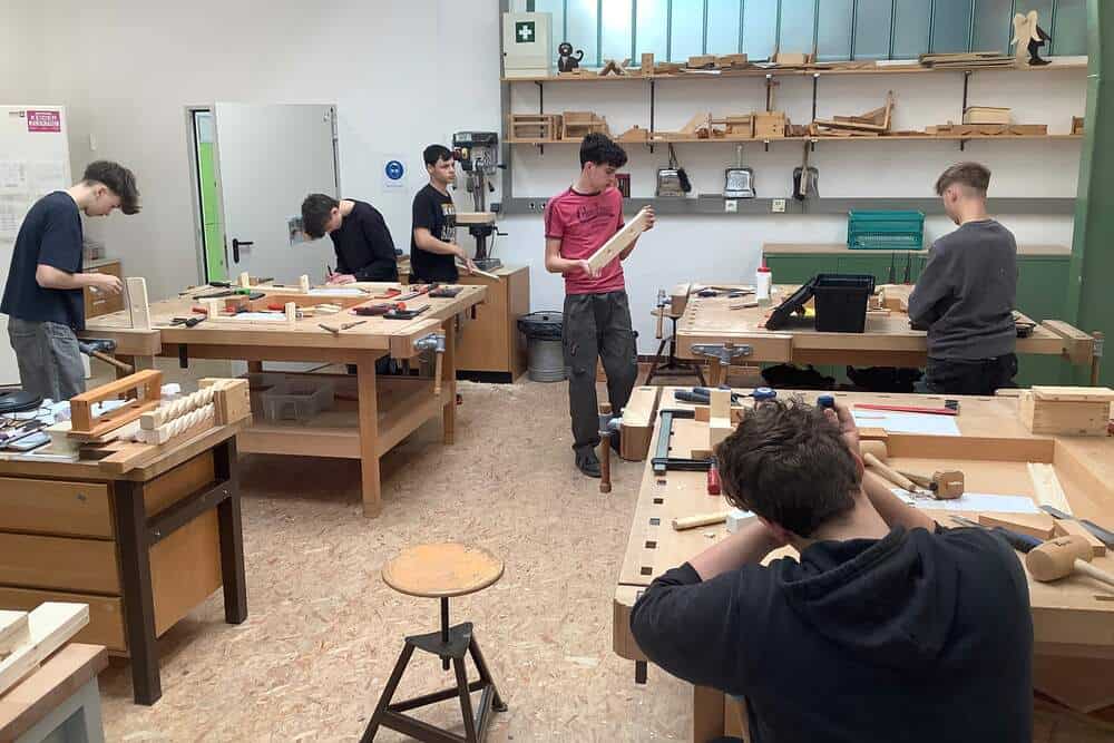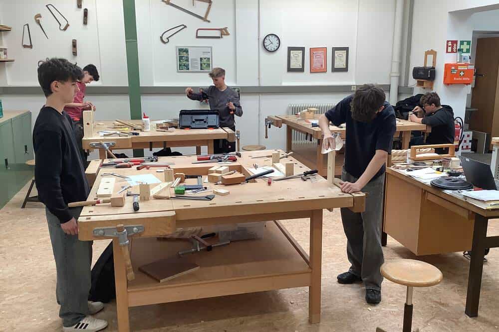 Im Fachbereich Holz entstand ein Kleiderboard – mit sauberen Zinkenverbindungen, Bohrungen, Dübeln und viel Augenmerk auf Maßgenauigkeit und Verarbeitung.