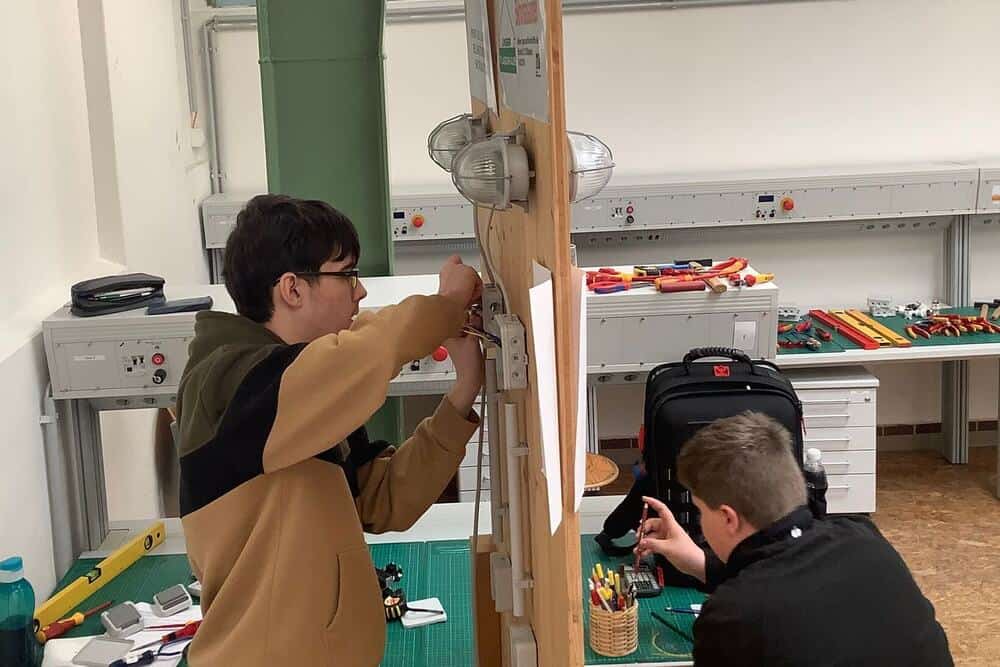 Im Elektrobereich bauten die Teilnehmenden nach einer theoretischen Überprüfung eine Schalttafel auf. Gefragt waren korrekt gesetzte Dosen und Schalter, sauber verlegte Leitungen sowie übersichtliche Verdrahtungen.